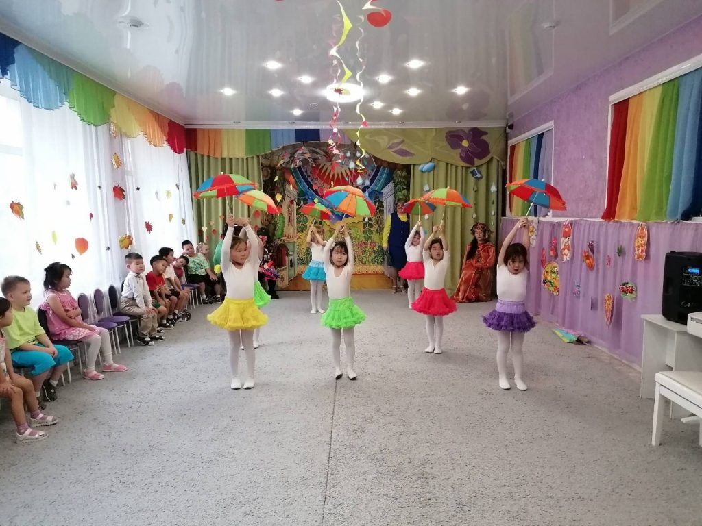 В первой младшей группе это был первый праздник, но не смотря на это, дети были увлечены песнями, танцами, играми и с большим интересом встречали пришедшую к ним в гости Золотую осень и зайчика, которая сыграла воспитанница подготовительной группы. Искренне радовались играм и танцам. Во всех группах дети с удовольствием участвовали в конкурсах, читали стихи и танцевали вместе с воспитателями.