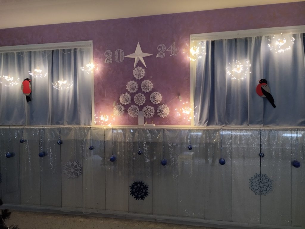 С 26 по 28 декабря в нашем детском саду были проведены новогодние утренники во всех возрастных группах. Музыкальным руководителем Петренко С. Н., воспитателями и специалистами проведена большая работа по подготовке к проведению утренников. Яркое, художественное оформление зала создало настроение торжественности, парадности и сразу вызвало у детей, вошедших в зал, приподнятое настроение. В играх и хороводах вокруг елки звучала веселая, задорная музыка, которая передавала настроение общей радости, веселья, обогащала всех разнообразными, надолго запоминающимися впечатлениями. Этот зимний праздник принес детям встречу со сказочными образами Деда Мороза, Снегурочки, лесными зверями, различными персонажами инсценировок.